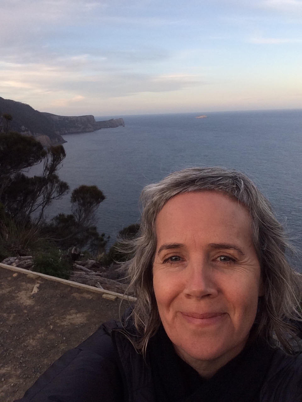 March 6, 2018 boneAndsilver blog – SunsetSelfie Sunset selfie from the helipad #threecapestrack #tasmania #over50 #bushwalking