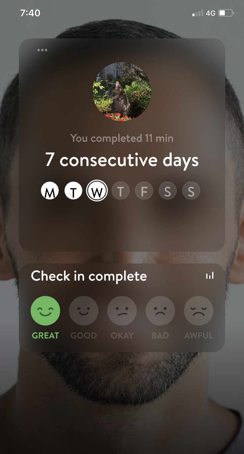 I was so inspired by myself and my post, I checked in to the app every day, and religiously sat to meditate.