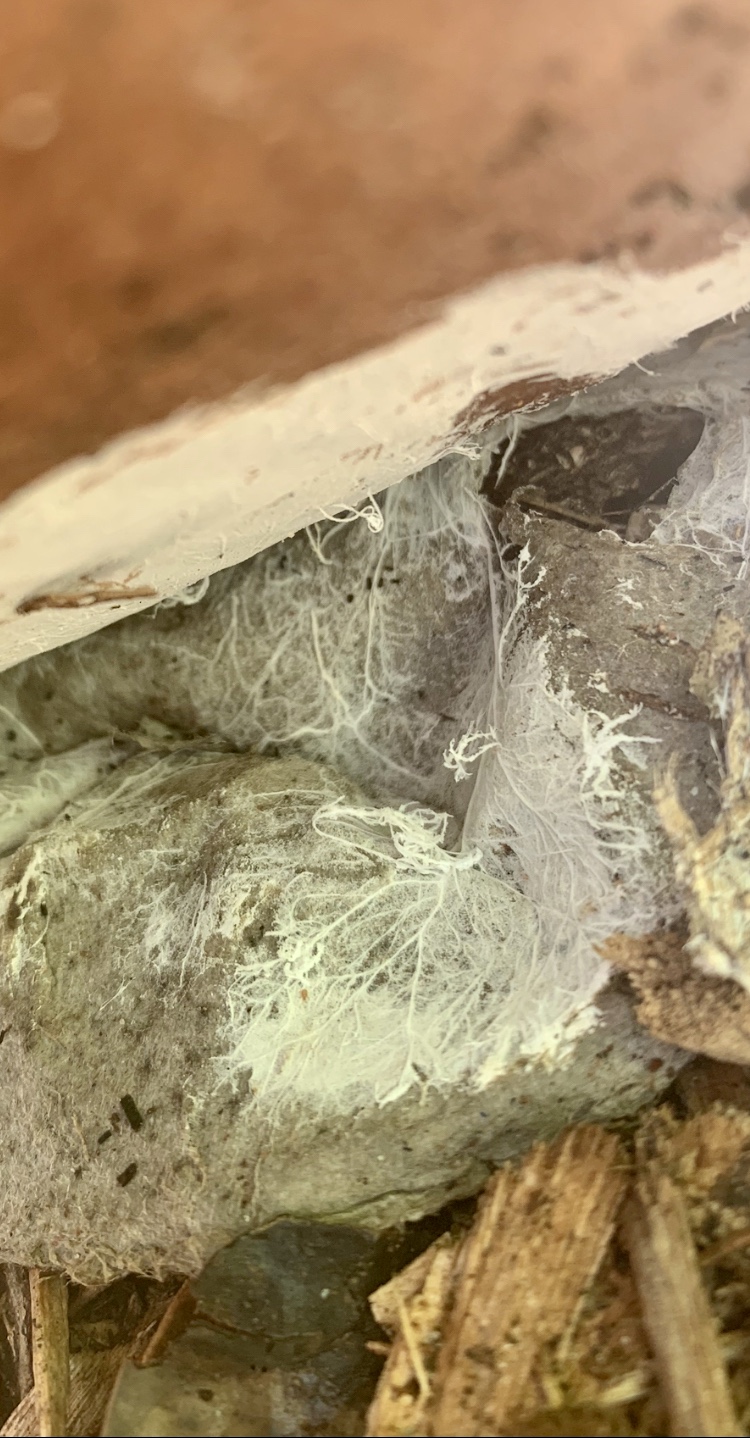 Remember when I said I was making a Wine Cap mushroom bed under my old lime tree? Well little did I know, as I toiled to layer the cardboard, bark chips, and compost, but I was being watched by a number of excited forest crittters, waiting to see what gifts I was bringing them. I very quickly found little scratch marks and tiny holes dug out all along the sides of the bed… “No way buddies! I’ve worked too hard for this!” So as you can see, I went back to the hardware store, and bought metal stakes and netting to protect my magical mushies. Determination can be my middle name, and hang the extra expense. Didn’t work. Damn critters just dug in under the netting, even though I’d then weighed the sides down with rocks, boulders, and thick branches. I felt a little disheartened, and stopped checking every day, wondering if I should transfer the bed to my fully-fenced secure veggie garden… Can one dig up mushrooms and just shift them I wondered? But …